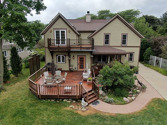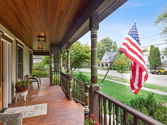 Beautiful custom home in the historic district of Crystal Lake achieves a rare balance of old and new. Original doors, floors and woodwork throughout the home give tribute to the home's history, built in 1909. Everything during complete renovation has been rebuilt from the studs in and updated to meet modern day living. This is the perfect family home for living, entertaining and working. The custom addition was made with care completing 5 bedrooms, 3.5 baths. Gourmet kitchen with wolf oven, Stanisci custom hood, gorgeous granite, copper farm sink and custom cabinetry. Entertain effortlessly as you flow from the stunning kitchen to the outdoor living space and adjacent family room. The charming playhouse which mimics the main home is the perfect place for kids to spend hours with friends giggling. You will love evenings in the main suite. The Spa like bath will ease your tension at the end of a long day. Set for relaxation the bedroom is complete with fireplace, study and private balcony overlooking your beautiful yard. The craftsmanship of the builder is displayed in the stunning library ceiling making working from home a pleasure. You are 7 minutes walking distance to train and downtown. Don't miss the 3 car carriage house with spacious loft. The home has zoned heating, cooling, new water heater, newer roof so much more than meets the eye. Every detail in construction for a home to live in for a lifetime. Delight in watching the rain, or star gazing from any of the lovely porches surrounding the home. This home was made for living and enjoying life.