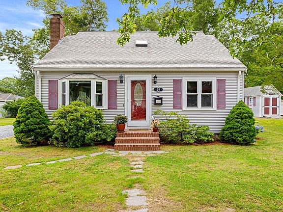 This charming Cape-style home is ideally situated near all the amenities of downtown Falmouth and just four houses away from Great Pond. Every time you return, you'll be greeted by a picturesque water view. It's the perfect summer spot to enjoy nearby beaches and a public boat ramp, all while being outside the flood zone.Property features: Four Bedrooms: Two bedrooms on the first floor, both w/ hardwood floors, and two carpeted bedrooms on the second floor. This setup provides flexibility/space for families or guests. Open Floorplan: Ideal for entertaining, the 1st floor boasts an open living/dining area w/ a wood-burning fireplace, creating a cozy atmosphere. The recently renovated kitchen/addition features vaulted ceilings & skylights, enhancing the space w/ natural light. Outdoor Amenities: A deck off the kitchen offers convenient outdoor dining options. The level quarter-acre lot is fenced on the sides and back, providing privacy. A large upscale shed offers numerous possibilities beyond simple storage, ie. summer guest room, home office, art studio, gym, outdoor bar, game room, garden room, workshop, kids dollhouse or activity room and so much more! Additional Features: The home includes a full basement with both interior and bulkhead access, where the washer and dryer are located. Title V has passed.
