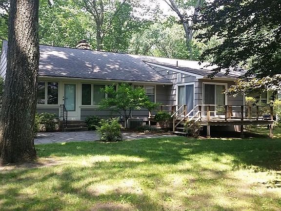 Spacious Ranch. Great for entertaining! Huge Living Room with fireplace and built-ins opens to Dining Room with gorgeous hardwood floors. Two family rooms - first floor with hardwood flooring, and the second is in the lower level. Kitchen with dining area has sliders to deck and stone patio overlooking lovely backyard. Master Bedroom has full bath and large walk in closet with additional cedar closet. Hardwood flooring under carpet in Master. All rooms with the exception of the kitchen have been freshly painted with a neutral color. Abundant storage in basement including "cold" storage. Conveniently located to parks, shopping, highway access, and other area amenities yet quietly tucked away in an established neighborhood.