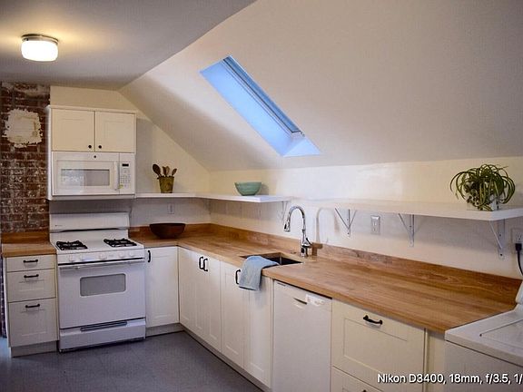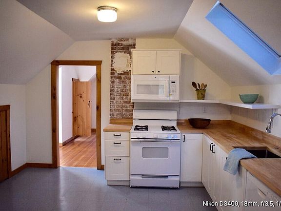 If you love an open kitchen to cook and entertain in or if you are searching for a quiet one bedroom apartment with style and soul, then look no further! On the 3rd floor and accessed both front and back staircases with small back balcony. Beautiful three unit home with arts& crafts architecture. Dual pane windows on all sides and skylights so there is much natural light. The kitchen has pretty light blue tile floor. Refinished pine floor in the living room and bedroom. Fantastic eat-in kitchen with gas burning range, recessed panel white cabinetry, open shelving and butcher block counter top plus fridge, dishwasher, sink with disposal and high end faucet, microwave hood and full size washer and dryer. Spruced up bath with shower. Basement storage, radiant heat and air conditioning round out this superb rental. Wow! Owner pays trash, water, snow removal and yard maintenance. Tenants pay for electricity and gas. Smoke free property. 1 off street parking. No dogs. 1 cat allowed. Call owner first before showing can be arranged.