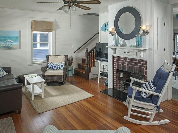 Quintessential beach-town cottage. Located equal distance between the beach and bay, the house has a covered front porch and open back deck. There is a full unfinished basement for good storage, and outside shower. Inside there is a living room, large kitchen dining area combo, sunroom, large full bath and fourth bedroom. Upstairs are 3 bedrooms and a full bath. Quick closing possible.