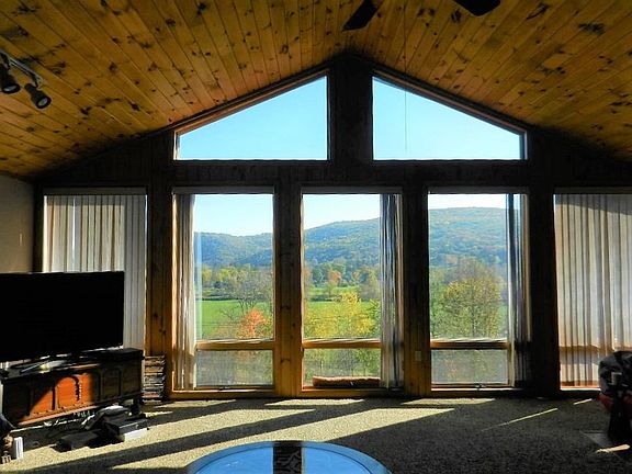 Take in the spectacular view from the floor to ceiling wall of windows in this 4 bedroom, 2 bath chalet. The open layout concept on the main floor features a large living room w/ stone fireplace & cathedral ceilings, dining area, and fully applianced kitchen with breakfast bar. 3 ample sized bedrooms & a full bath complete the main level. The finished lower level offers a nice large family room, 4th bedroom, laundry room, and another full bath. A 2 car garage & a private yard top it off. This home is part of the 100% Money Back Guarantee Program, certain terms & conditions apply.