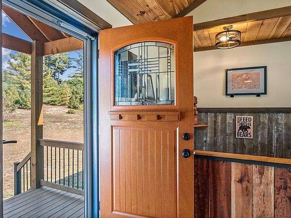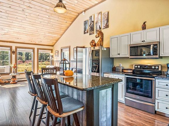 Nestled at the edge of conservation land, this custom-crafted home is a true gem. Built in 2021, with the walk-out level completed in 2024, this 1,620 sq. ft. Craftsman-inspired residence blends nature & luxury. Imagine waking up to the sights & sounds of wildlife—deer grazing just 40 feet away, bald eagles soaring overhead, & red foxes passing through. This property invites nature into your daily life, offering a unique connection to the surrounding landscape. The open-concept layout of the home is a work of art, featuring high wooden ceilings, solid cherry & oak shiplap accent walls, & a stunning 13' stone hearth with woodstove. The great room, with its wall of windows, floods the space with natural light & breathtaking views. All 3 bedrooms boast oversized windows, making it hard to choose which should be the primary. Each floor is equipped with a full bath, adding convenience & flexibility to this thoughtfully designed home. The kitchen is a chef’s dream, with a large, removable island, stainless steel appliances, soft-close cabinetry, & granite countertops. Set on over 4 acres with 2+ acres of beautifully maintained field & lawn, the property offers a bounty of native berries. An 8'x12' shed provides storage for gardening tools, while the 2-car garage, with 14' ceilings, offers space for vehicles & recreational toys. This is more than just a home—it’s an extraordinary experience, a place where nature & craftsmanship converge to create an unmatched lifestyle.