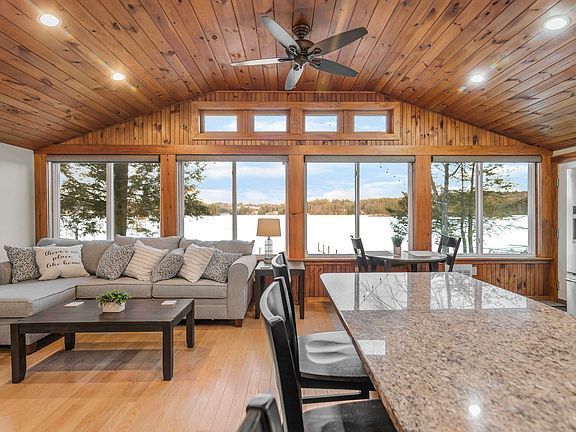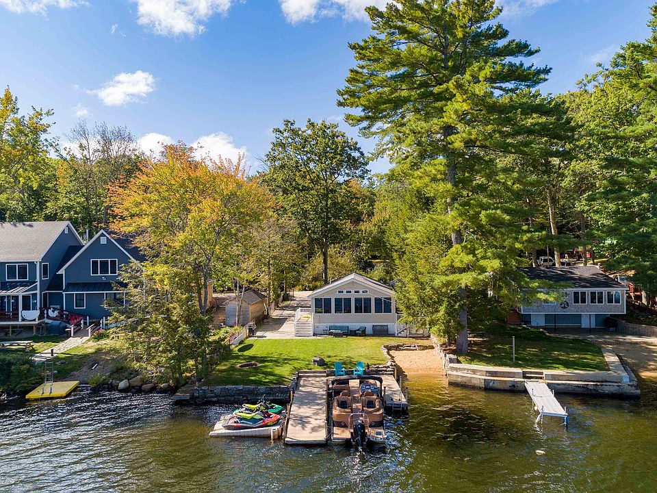Incredible Opportunity to Own Waterfront Property on Northwood Lake's Coveted Southeast end. This Open Concept Home has been completely Updated and was thoughtfully designed to make the most of the Truly Captivating Lake Views! Don't miss the rare feature of having an OVERSIZED Double-Dock perfect to tie up not only yours but also your guests' boats and water toys this summer! This property was built for entertaining both inside and out as it sleeps up to 7 and sports a Huge Lake Side Lawn, Level Lot, Large Stone Patio, Firepit and Side Porch all of which overlook the broadest part of the lake. You could be docked on the edge of the pristine Lawn enjoying some breathtaking Pink to Orange Sunset Skies and the brightest Star Filled Nights you will witness in your lifetime! Nature abounds around you! The Patio overlooking the Lake is perfect for those BBQ'in afternoons into evenings and a circular paver fire pit is ready to roast smores and tell tall tales! Inside is furnished with beautiful pieces and an 85" Sony Smart TV that might even tempt you into a Movie Night! Laundry conveniently located in a gorgeous Tiled Bathroom. Paved parking for 4-6 vehicles. Prepare your crew for lifelong memories waterskiing, wakeboarding, Wake Surfing, Fishing, Floating and Boating to your heart's content on this beautiful serene 653 Acre Lake. Only 25 Min East of Concord, 35 Min from Manchester and 85 Min from Boston. Delayed Showings until Sunday 6/11/23. Agent Interest