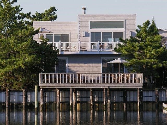 Secluded Bayfront oasis on the quiet Flamingo Drive cul de sac. Over-sized deck with pool extends out to a large stationary dock over the water. An additional floating dock offers a generous boat slip. Complete pool renovations in 2010. Mature trees and shrubs create a naturally private environment. The upper level Great Room and Master Bedroom share an upper deck with enchanting water views. First floor features include 2 bedrooms with sliders facing the pool and the bay. Additional third bedroom. Decked front breezeway with large private outdoor shower/storage room. Enjoy this charming Bayfront home or build your dream house. Partially furnished - a list to be provided.