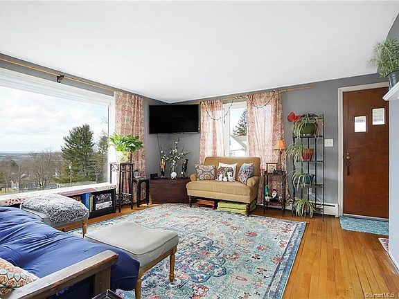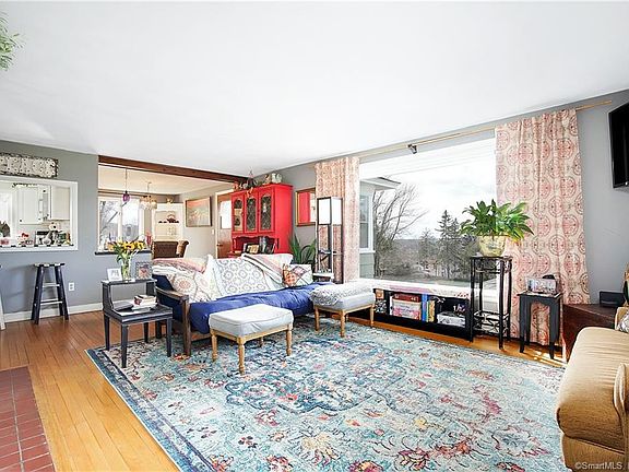 You want to live in Ellington here is your chance. Large 3 bedroom ranch with new kitchen and 3 year old roof. Hardwood floors throughout the home. Basement offers a large heated family room with the second fireplace, along with additional semi finished area for additional living space. Amazing sunsets from your living room window or outside on the patio. Enjoy the three season room taking in the sunsets there. The large backyard is mostly fenced in. Large two car detached garage for extra storage if needed.