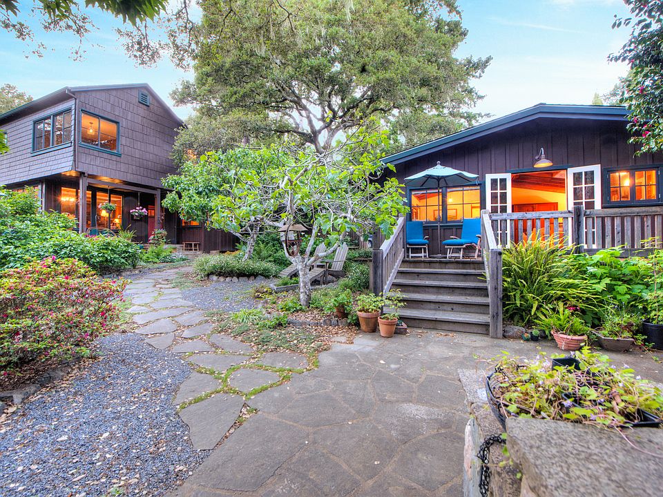 "Invernest" - Impeccable California Craftsman in Serene Inverness. Century old oak trees. Sun soaked gardens. Natural privacy. The historic main house, with original redwood walls and fir floors, enjoys a complete new chefs kitchen with high-end fixtures and surfaces. The three light filled bedrooms, offer ample space for big families and entertaining alike.The cottage, privately situated away from the main house by apple and figs trees, was completely renovated in 2007. It too has a custom kitchen, high end finishes and French doors that open to a private sun deck. Perfect for in-laws or extended guests.The classic charm of this idyllic property is grounded in stone paths that wind from the wooden decks, to endless gardens and an outdoor patio with stone fireplace. Nestled among the garden is an additional outbuilding set up for a workshop or art studio. Located on the mesa with views of Inverness ridge, this rare find is just a 5 minute away from town. Pt. Reyes Seashore and Tomales Bay are your backyard. In Inverness, the world is your oyster.