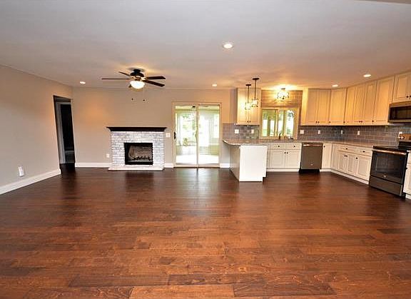 UPDATED 1700 sf 4 bed Ranch in a great location. Enter to beautiful engineered hardwood throughout the open floor plan. Large kitchen w/42" raised panel cabinets, granite counters w/ under mount sink, graphite appliances, breakfast bar. Wood burning fireplace, separate dining area. Main floor laundry off kitchen. New fireplace! 2 panel doors, 5" trim throughout. Four spacious bedrooms with brand new carpet. Master bedroom with ensuite bath w/walk in tiled shower and floor. Huge W/I closet! Tiled hall bath with all new fixtures and vanity. Basement is drywalled and ready for final finish with additional storage. Brand new HVAC and electrical panel! To top it all off, an enclosed porch with ceiling fan off the family room. But that's not all, the outdoor space also includes expansive concrete patio on a huge, level lot, completely fenced. Maintenance free vinyl siding, enclosed s/f and covered front porch with freshly stained concrete. 2 car garage with pedestrian door to backyard.