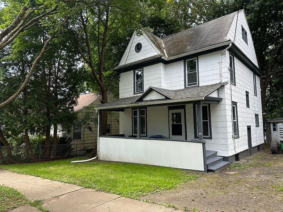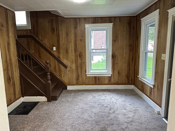This property features a spacious 4-bedroom, 2-story house with plenty of living areas to enjoy. The home includes a formal dining room, a cozy eat-in kitchen, a large living room, and a forum. Additionally, there's a walk-up attic for extra storage or potential living space. Outdoors, you can relax on either the front or back porch, ideal for enjoying your morning coffee or unwinding in the evening. Down a small hill is a level rear yard that provides an excellent space for outdoor activities, gardening, or simply enjoying some fresh air. Know financing as the garage is sold as-is and has a damaged roof and partially damaged floor.