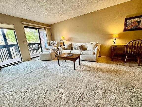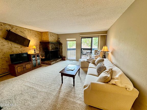 This cozy yet spacious 1 bedroom condo is nicely updated and includes many amenities! The open floor plan's comfortable size provides living room seating around a wood burning fireplace, a desk/work space, large dining table and bar seating in the kitchen. Enjoy the deck off the living room which backs to open space for privacy. A full bath for guests, ample storage closets, plus washer/dryer hook up are accessible from the entry hall. The primary bedroom and ensuite bath with jetted tub complete the living space. Large exterior storage closet can fit bikes, skis, and all of your gear. Sun Song amenities include tennis/pickle ball courts, hot tubs, paved parking lot, cable, Internet, and Lift bus stop on site.