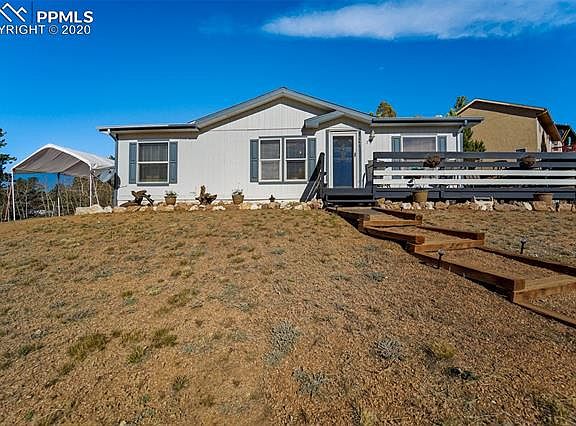 Welcome home to your 2 bedroom plus an additional room with walk out, 2 bath, ranch style sanctuary on an elevated lot with gorgeous views in this peaceful development in Florissant. Very well maintained and tastefully updated with new vinyl plank flooring throughout the main living space including the kitchen and bathrooms. Double wide HUD standard manufactured home provides cozy mountain living without spending a fortune. Custom kitchen cabinets provide plenty of storage space and nice eat in dining area is light and airy with a convenient counter bar. Master bedroom adjoins updated full bathroom with granite counters. 2nd bathroom is next to 2nd bedroom and additional room. Walk out to large partial wrap around wood deck to entertain or to just relax and enjoy the beautiful surroundings. Roof is just 4 years old and seller has already arranged for additional tree maintenance or removal and septic seep pit system will be inspected and pumped if necessary. Close enough to town to get what you need, but far enough away to call it your own sanctuary in the mountains. A must see, but hurry! This one won't last long.