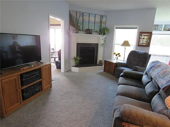 Serene setting over looking a pond. Watch wild life from sitting on your 12' x 20' Trex deck with a motorized awning. Home offers $50,000 in upgrades on a premium lot. Immediate possession if needed. Open floor plan w/9' ceilings, kitchen offers a large center island with breakfast bar, includes all appliances and under counter lighting. Cozy great room with a gas fireplace, sitting area with a built-in window seat and picture window. Master bedroom offers a large walk-in closet, master bath w/double sinks, 5' shower with glass door. 2 car heated garage, c/a, low HOA and a 12 course basement partially finished. Enjoy maintenance free living and be close to amenities. You will love it.