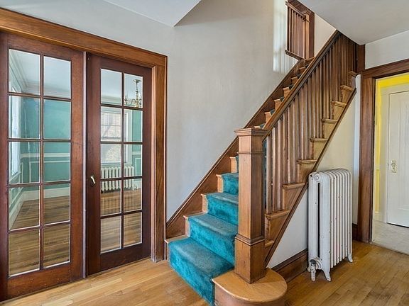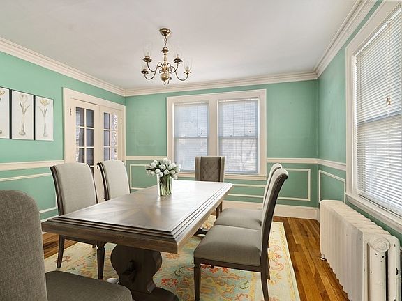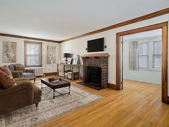 Excellent and rare opportunity to bring your vision and upgrade this classic 8 room, 4 bedroom, 1 bath center entrance colonial with a 1 car detached garage. Well located on a side street, yet .2 of a mile to Cushing Square! Front to back living room with hardwood floors, fireplace and French doors leading to the sun room. Dining room also features hardwood floors and French doors. Large eat-in kitchen with exterior access to the deck and backyard. 4 corner bedrooms on the 2nd floor and access from one of the bedrooms to a large unfinished attic. Full bath on the 2nd floor. Lower level is unfinished and has good access to the exterior side of the house. Photos are virtually staged. Offers due Monday January 16th at 5pm. Pre-offer inspection is strongly encouraged and select times will be available.