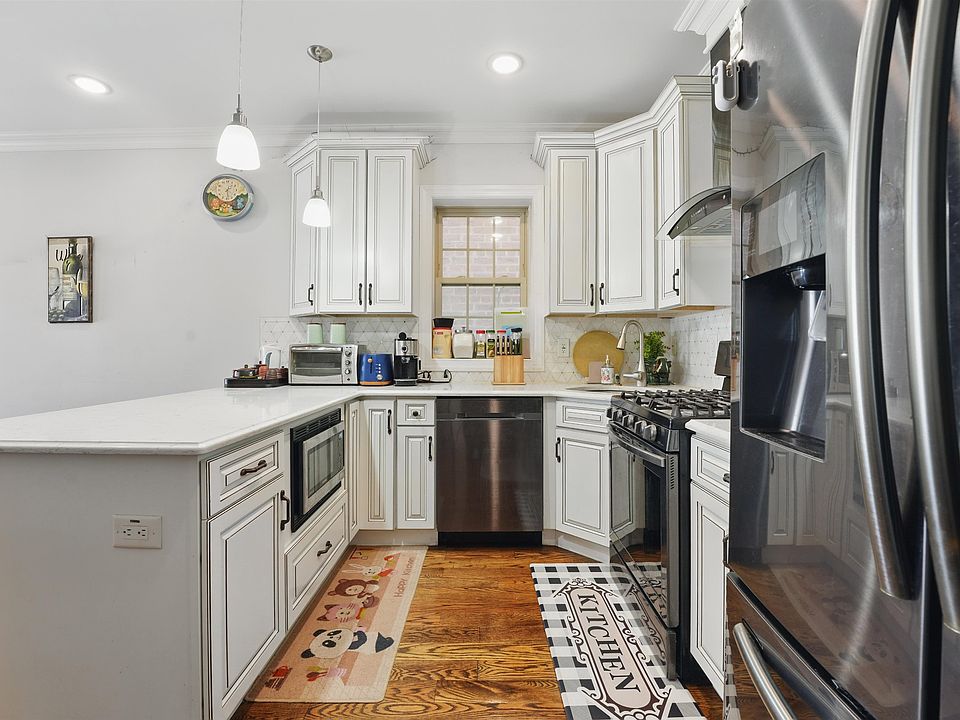 Massive 4 bedroom/ 2.5 bath duplex ideally located on the quaint and parkside Grace Street. the impeccably finished home offers ample indoor and outdoor living with a quiet, shared backyard nestled just steps away from Washington Park! Ground floor offers a separate entrance to provide convenient access to an expansive lower level living room with a bedroom, half bath, full-sized laundry and ample storage. Head upstairs to the open and airy kitchen/ dining space with oversized windows and gleaming walnut hardwood floors. Gourmet kitchen features bright shaker cabinets, white quartz counters, polished marble backsplash, black stainless steel appliances, and upgraded pendant lighting. Master bedroom comes complete with a Juliet balcony overlooking the large backyard. Steps from both Washington Park and Central Avenue in Jersey City Heights, great restaurants, shopping PLUS easy commute to NYC and JSQ PATH station. Available 6/1/25