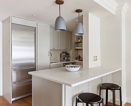 Upon entering this exquisite apartment, you're greeted by 9-foot ceilings, Brazilian hard-wood floors, and an abundance of natural light from southern exposures. The living space features custom built-in radiator covers, 9-foot bookcases, and motorized Roman shades, creating a seamless blend of elegance and comfort, with ample room for a dining room table. The chef’s kitchen is equipped with top-of-the-line Sub-Zero and Wolf appliances, sleek quartz countertops, and custom walnut open shelving.