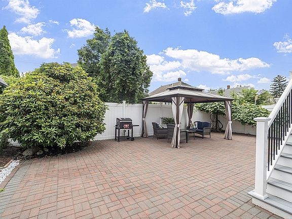 Impeccable 2+ Bedroom Bungalow with a serene outdoor oasis! Over 2,000 square feet of quality renovated living space including a fabulous lower level with a bonus office area, laundry/storage room, Harry Potter nook under the stairs, sliding barn door leading to a large bedroom, tiled bath with shower stall and a walk-in custom closet/dressing room. Walk out to the expansive fenced -in patio with a Cabana, garden with grape vines & rose bushes! On the main level there is a gorgeous half bath off the entryway abutting a generous open layout for all your living, dining and kitchen needs. Two bedrooms, one with custom cabinetry, plus an attractive tiled full bath with heated floor and towel rack. Beautiful designer kitchen with contemporary pendants over an island large enough for six person seating. This home has comfort and entertaining written all over it! Convenient location, close to shopping, Boston and only 3 miles to Revere beach.