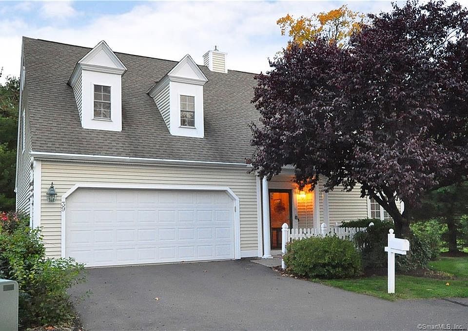 Welcome to 39 Grassy Hill Rd. Finished with many custom features and featuring an attached 2-car garage this free-standing Farmington home boasts all the ease of a well-run 55+community with the privacy and charm of a light-filled New England Cape. Located in O'Meara Ridge, this lovingly maintained home features sparkling hardwood flooring throughout. On the first floor there is an open and spacious eat-in kitchen with granite countertops, a pantry, ample storage and a gas cooking range. The open plan layout allows for easy and relaxed living- there is plenty of room for a dining table- as well as a comfortable living room seating area featuring a gas fireplace. One of the gems of this home is the sun-drenched "four seasons" room. Because of the attractive and uniquely private location of this unit, backing onto a wooded hill, your mornings will be filled with birds chirping away as you drink your coffee and read the paper. If you wish to go outside and enjoy the garden, sliding glass doors open to a pretty patio, ready for an afternoon barbeque. The first floor primary suite is large and comfortable with two spacious walk-in closets and more than enough room for a king-sized bed. The suite was thoughtfully (yet unobtrusively) designed to allow owners to age in place featuring an en-suite bath with low threshold shower and grab bars. There is also a guest powder room and laundry on the first floor. Upstairs you'll find two additional bedrooms convenient for a quiet workspace or visiting family. One of these additional bedrooms has an en-suite bathroom and an enourmous walk-in closet with custom built-in cabinets. the second upstairs room can be configured as a guest room, study or home office, with access to substantial walk-in attic space providing lots of storage. The home has a large, clean, unfinished basement. Central Air. Central vacuum. Low HOA fees. This home is convenient to Farmington Center and is a quick hop to UCONN medical center with the convenience of many great physicians nearby. The local cafes, fine dining, shopping and parks make this location an incredible place for your new home!