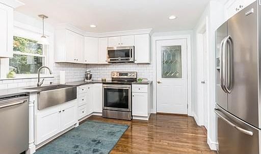 Beautifully maintained and updated full basement Ranch with attached enclosed breezeway and large 2 car garage.Totally move in condition. Great opportunity to own in Maynard with its vibrant shops, restaurants and new bike trail. Spacious open floor plan flows from kitchen to dining room to living room.Gorgeous hardwood flooring throughout the living area.Updated kitchen with white cabinets,quartz counters,stainless country sink & appliances, recessed lighting with breakfast counter area. Diningroom with china closet, bow window & recessed lighting.Living room features picture window,fireplace & recessed lighting. Hardwood in all bedrooms. One and a half baths. State of the art economical gas furnace installed in 2016. New roof,kitchen & baths approx. 3 years young. New bulkhead entry doors. Breezeway just updated with new windows,flagstone,ceiling fan & new door. Conveniently located to commuter rail station and Maynard school campus. Do not miss out on this great property.