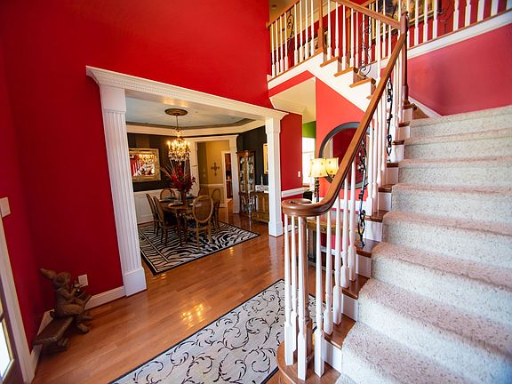 Simply beautiful! Custom built, all brick home. Spacious eat-in kitchen with bar seating open to family/living room. Custom ceramic tile backsplash, solid surface countertops and stainless steel appliances. Oversized crown molding in the entire home. First floor suite with large garden tub and oversized, tiled luxury shower. Hardwoods throughout first floor. Ceramic in all baths and laundry room. Second floor has 3 bedrooms,2 baths, custom theater/bonus room and study. Heated 3 car garage.