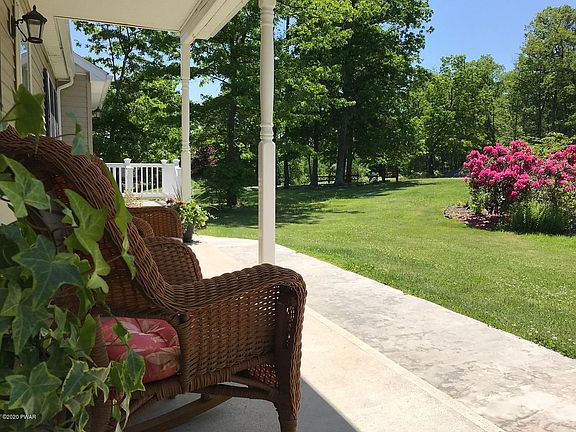 EASY LIVING RANCH NESTLED ON 2.6 PARK-LIKE ACRES -- WAYNE HIGHLANDS SCHOOL DISTRICT! Tucked away at the end of a quiet cul-de-sac, this immaculate 3 bedroom/2 bath home offers a modern kitchen, central air conditioning, living room with glass front wood burning stove, main level laundry, massive family room full of natural light, full basement, and attached garage. Enjoy private evenings barbecuing and entertaining on your deck overlooking shaded yard and back woods or sit on your front rocking chair porch and enjoy easy country living at its finest. Just a half mile walk or drive to nearby Cricket Hill Golf Course.
