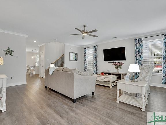 This beautiful house located in Richmond Hill, GA is an upscale designer row house that boasts of luxurious upgrades and features. The Sumter model of the house is equipped with a range of amenities, including an electric fireplace at the rear porch, hardie siding, coved crown in the family room, kitchen, and dining area, quartz countertops in the kitchen, a frameless shower in the master bath, and luxury vinyl plank flooring throughout the house.