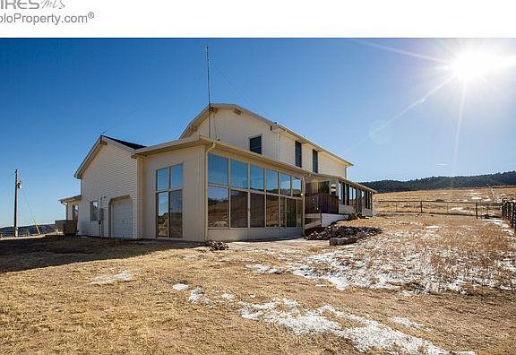 A truly special off-the-grid capable property set among the rolling hills. Unique constr was well planned to take full advantage of the passive and active solar system. Open living area with huge wall of windows offering passive heat and great views. Large 3 car garage, fully fenced for livestock, corral and barn, back-up generator are some of the added features. SF does not include the 3 enclosed sunrooms. Livermore is only 45+ minutes to Ft Collins and all the city conveniences.