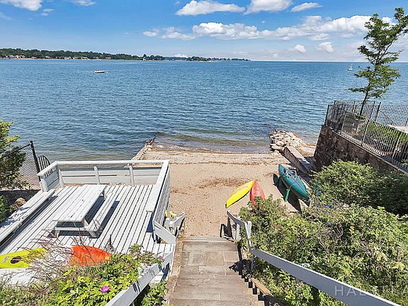 Shippan Point waterfront community with deeded beach rights! Enjoy paddle boarding, kayaking, or relaxing at your private association beach just steps from this move-in-ready home. Convenient to everything (downtown, restaurants, NYC Express train, highways) and made for entertaining. The main level features an open living/dining area and a modern chef's kitchen with sliders to a deck overlooking a private backyard. Three bedrooms and two beautifully remodeled baths complete the first floor. In addition, you'll find a large family room, a 4th bedroom, and a full bath on the lower level for more excellent living space. Highlights include water and city views, hardwood floors, and a 2-car attached garage. Many updates: newer mechanicals (furnace, water heater, a/c condenser), windows, irrigation system, garage doors, fence (see attached for complete list) make this a must-see! Flood insurance is not required!