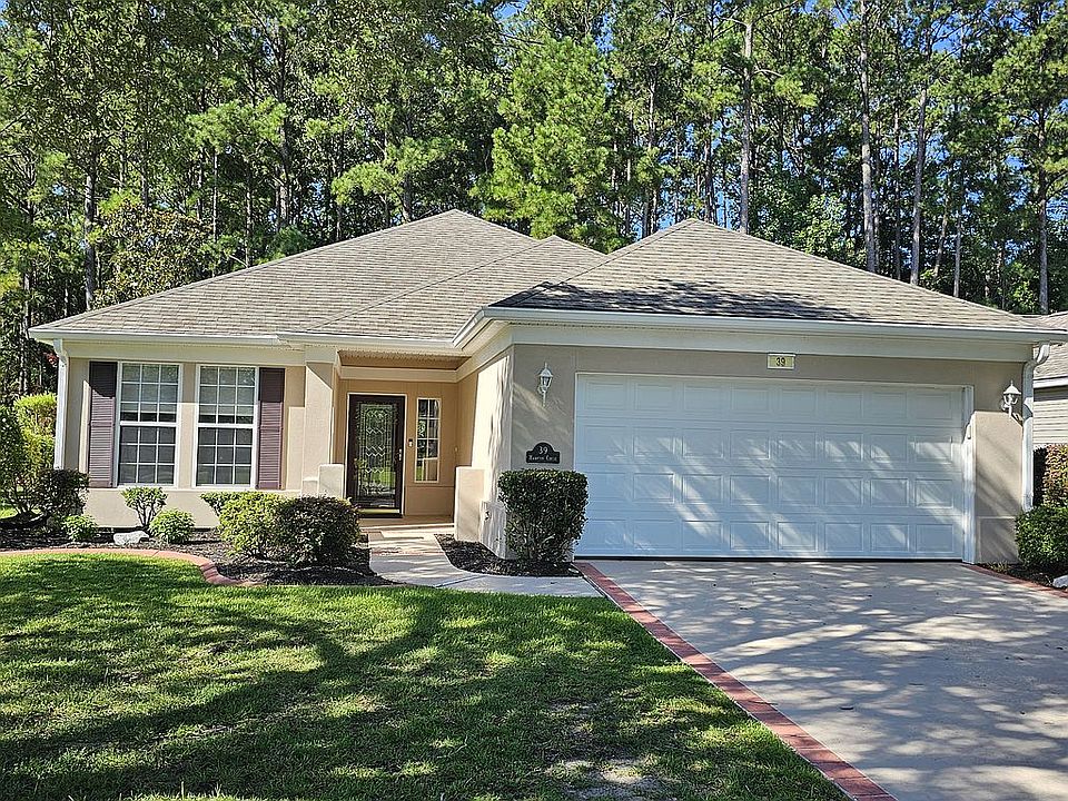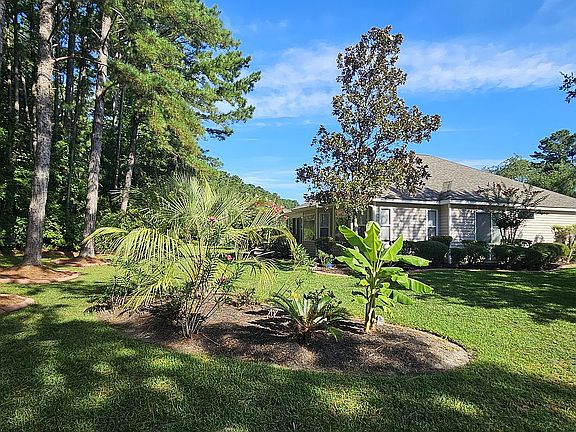 Kingston/Potomac model expanded with several bay windows. situated on a corner lot, with a park-like wooded view. Large eat-in kitchen w/Granite counters, white-crowned cabinets, and tiled backsplash. Sliding glass door from Master to Carolina Room and patio. New tile 2014 in kitchen and computer room. Tile in baths. Wood in Foyer. Upgraded blinds. Architectural shingles 10/2020 HVAC 2020. Laundry tub and side door in the garage. Conveniently located within a mile of Hidden Cypress amenities/restaurant and sports complex/wood-working shop/dog park.