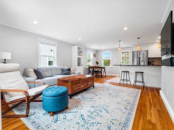 A fantastic Roslindale gem! This captivating Cape-style home has undergone a complete transformation in 2017 resulting in a magnificent living space. Additionally, a second floor was added in 2021, expanding its footprint. The open concept layout seamlessly connects the kitchen, living, and dining spaces. The kitchen area boasts exquisite granite countertops, sleek porcelain tiles, and stainless steel appliances, and is enhanced with recess and pendant lighting, as well as a generous breakfast bar, providing both functionality and style. The second floor features a remarkable master bedroom with a massive walk-in closet, along with a second bedroom, both of which are accompanied by a double vanity bath, complete with a large walk-in shower. New systems from 2017 include central A/C, gas heating, plumbing and updated electrical. The basement is ready to be finished offering even more living space! The yard is an urban oasis with an ample deck and fenced in back yard.