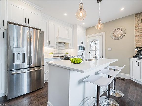 Over $100K in improvements made! Welcome to 39 Hebel Place - a fully restored century charmer that has been thoughtfully remodelled with keen attention to detail. The work of quality craftsmanship is evident throughout while the era and history of the home have been honoured through timeless works including exposed brick, massive windows, 9' ceilings and original doors. Gleaming hardwood runs throughout showcasing a seamless open floor plan perfect for entertaining. The classic kitchen features maple cabinetry, stone quartz counters, a large island, gas stove + a bonus coffee nook, all with access to the back deck. Open to the bright and airy dining room and through to the living room, which showcases a modern touches such as built-in speaker system and stone fireplace feature wall, yet blends with the classic offerings of coffered ceilings. Upstairs you'll find a spacious main bedroom with walk-in closet, a large second bedroom, renovated 4 piece washroom with heated floors + office nook. Further up, you'll find an unspoiled 3rd floor loft space, where you can add your finishing touch and expand on the already beautiful living space. The basement offers an abundance of storage opportunities including an 11' workbench and backyard access, perfect for storing bikes, snowboards, golf clubs, you name it! This home is as turnkey as it gets! Furnace, A/C and Water Softener all replaced within the last 5 years, windows replaced in 2015&2016 and fence and deck rebuilt in 2017. Located on a private and quiet one way street in Downtown Kitchener, with quick access to amenities, LRT, GO Train, restaurants and more - this home is just a short 5 minute walk to the beautiful Victoria Park and a 10 minute walk to the Kitchener Market - get your market trolly ready!