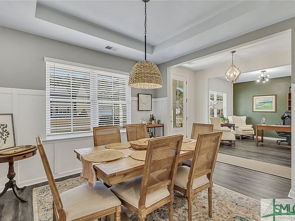 NEW PRICE! Welcome home to this beautiful two-story, home located in an amenity filled community close to Savannah! As you enter, you are greeted with a living room on one side and a dining room on the other side. Once you pass through the foyer area, the home opens up into a large family room (with electric fireplace) with an open floor concept with the gourmet kitchen and eat-in area open to the family room. The designor kitchen offers stainless appliances, upgraded cabinets, an island and granite counter tops. The beautiful owner suite is located on the main floor and the owners bath has separate sinks, soaking tub and walk in shower. The second floor offers a total of 5 MORE bedrooms. Two bedrooms with a Jack and Jill bath, another 2 bedrooms and full bathroom, plus a large 6th bed/bonus room with closet for flex space. Outside you will find a large (privacy) fenced in backyard and a welcoming patio to entertain or spend time with family!