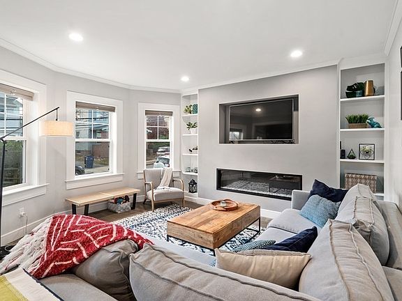 Ideally located between Roslindale Village and The Arnold Arboretum, this tastefully remodeled first floor condo is not to be missed. Renovated to the studs in 2019 by a local builder, this two bedroom unit is spacious and open with a modern layout. The private front entrance brings you into a custom entryway with ship-lap accents and abundant storage for coats and shoes. The open kitchen with quartz counters connects to the front facing living room, offering ample entertaining space with custom shelving. Ash grey hardwood flooring and crown molding throughout are additional touches that distinguish this home. Private storage space for each unit in basement, common space for HVAC and on demand water. Deeded parking spot in back and an EV charger exclusive for unit 1.
