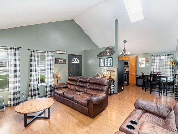 Inside, the living room boasts vaulted ceilings with a skylight, creating an open and airy feel. The partially finished basement offers an additional living area and a bonus room that could serve as a 4th bedroom, home office, or flex space. The home has been well maintained with a newer HVAC system (3 years old) and water heater (5 years old). Built on a poured concrete foundation, it provides lasting durability and peace of mind.