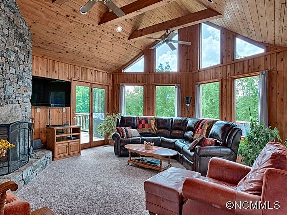 A MUST SEE! Enjoy the privacy. Home sits at top of beautiful level property w/usable land for gardening & play. 3 bdrms, 2 ba plus Bonus/Office on main. Kitchen open to great rm w/floor to ceiling stone fireplace & large windows. Lower level features nice finished family room w/cozy stove PLUS add'l 258sq.ft.bonus room not included in total Sq.Ft.) & opportunity to add future 3rd bath. Plenty of decks for entertaining. Only 15 mins to Asheville