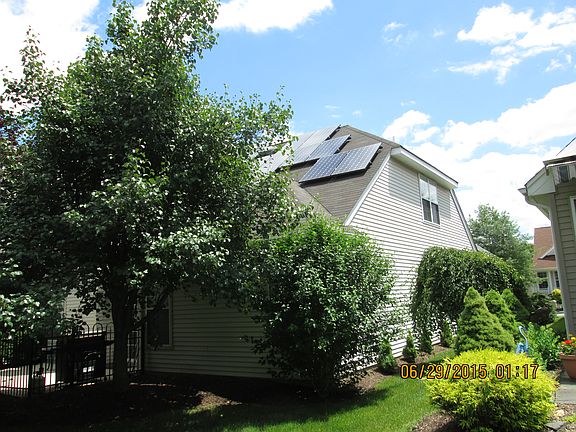 Welcome and let me take you through a tour of this amazing Bluebell Model in the popular Village Grande Crosswicks Creek, 55+ Adult Community. 3 bedrooms 3 full baths and a loft are included in this Modern/Contemporary open floor plan model. Upon entering the front door you will find a formal living room with cathedral ceiling with accent wall. The dining room is ample sized and has wainscoting and wall accents. Next you will walk into your dream kitchen including custom cabinets, stainless back splash, granite counter tops, Kitchen Island, updated appliances, breakfast area and ceramic tile floors. Off of the kitchen is a gorgeous family room with more cathedral ceilings, gas ceramic fireplace and sliders leading to the serine back yard including mature landscape, privacy and wrought iron accent fence. Back inside on the main floor you will also find the master bedroom with on suite master bath. The master bedroom offers tray ceilings, 2 walk in closets and custom room darkening blinds. The master bathroom offers a luxurious soaking tub and tasteful color palate. Also on the main level is another ample sized bedroom, a full bathroom, large closet, laundry room with storage and 2 car garage. Continuing to the 2nd floor you will find a 20x16 loft, full bathroom and another bedroom. Included throughout the house are custom made window valances adding that modern flare and "pop" of color. Last but not least this home comes with state of the art solar panels proven to save $ on your utility bills. Less ?