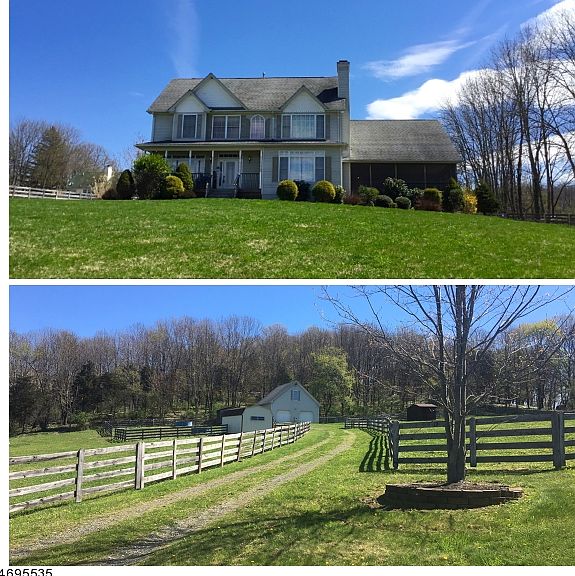 A commuters dream home. Minutes to Route 80. BRING THE HORSES! Original owner. Beautifully kept 4 bedroom colonial with an enclosed porch complete with an 8 person hot tub.Sit and enjoy the view. The house offers hardwood floors throughout. Heatolator fireplace in the family room. Solar panels to keep those electric costs DOWN! Whole house generator, 2 CA units and 2 furnaces. High ceiling in the master bedroom and a beautiful master bathroom. Fenced pastures on almost 5 acres. Electric fence which is operated by solar. 2 car garage currently is used to store hay, but can be turned into a barn. It has automatic feeders and water. There are 2 run in sheds, and another shed that was used for miniature horses in the past.