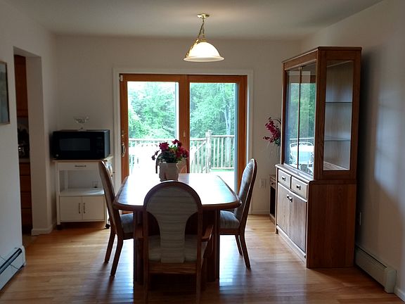 This is the perfect FURNISHED rental for anyone looking for privacy, but conveniently located, on a quiet country lane, just minutes away from Millerton NY and Sharon, CT. This 1716 square foot, 3 bedroom, 2 bath home has a master suite on the first floor as well as a second bedroom and second full bath, a kitchen, dining area and a living room. From the dining area, there are glass sliding doors that had to a lovely deck with table and chairs for outdoor entertaining. The second floor offers a very large room which can be used as a bedroom (with multiple beds, so like a great bunk room) and playroom or office area. In the walk out basement you can enjoy a foosball table and arts and crafts table, as well as a treadmill and cross country ski machine. Take a short stroll to beautiful Indian Lake, where you can swim, boat (non-motor boats), stand up paddle board, kayak and fish. It is a large private lake, only accessible to the few homes around the lake. There is a one car garage. Well-behaved dogs will be considered. Available immediately. Rental includes lawn care twice monthly from April-October and two home-cleanings per month at landlords expense. Tenant pays electric, heating oil, internet/cable, garbage collection, snow removal. Landlord pays lawn care twice monthly from April-October and two home-cleanings per month. Tenant pays electric, heating oil, internet/cable, garbage collection, snow removal.