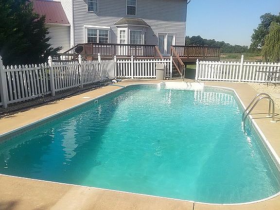 3-4 bed Colonial w/attached oversized garage on a totally fenced 3 acres featuring an inground pool (18*36). House originally was designed as a 4 bedroom but 1 bedroom was opened up to create a larger bedroom which can easily be converted back. Home features hardwood flooring through out, wood burning fireplace in family room, spacious eat in kitchen,16*35deck leading to the pool, full walkout basement(studded ready to finish). Has gas heat as well as a wood burning fireplace in the living room. Metal roof. Has paved driveway. Located near rt 340 making it a great commuter location to Northern VA.
