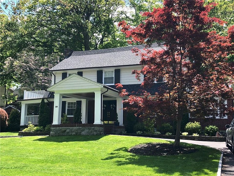 NO SHOW UNTIL 1/8/20 DUE TO WORKERS AT THE HOUSE. A/O Cont. to Show. Move right in to this Rochelle Heights Center Hall Colonial located in New Rochelle s historic district situated on a magnificent 1/2 acre. A circular drive with Portico leads to a bright front Entry with original HW floors leading to a large front-to-back LR w/custom millwork, a gorgeous stone Fpl and double French Doors leading to a covered Red Oak Porch perfect for afternoon tea! The DR w/coffered ceiling is open to an updated (2013) Kitchen w/Carrera marble island and Bosch appliances and off the kitchen a covered Patio! A 1/2 Bath and a Sunroom/Office with custom built-ins complete the flow. The 2nd fl features a spacious Master Bedroom, updated Master Bathroom and dressing room/closet, 2 Bedrooms and Hall Bath. The 3rd Fl offers a 4th Bedroom and Full Bath. The Lower Level has 966 sf (not included in sf) of additional space along with finished storage and laundry and 1/2 Bath. Minutes to Train and Town!