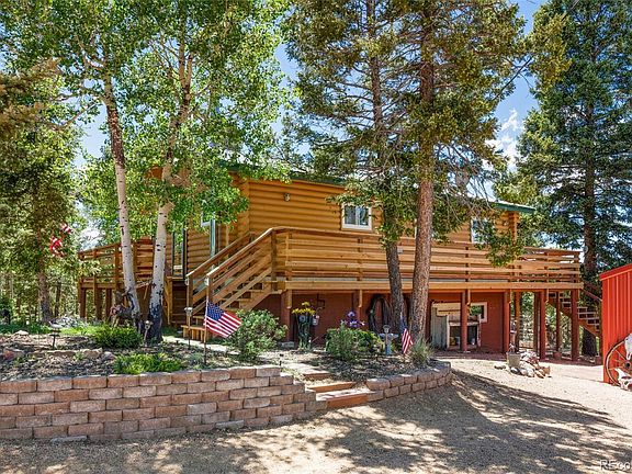 Nestled in the mountains on a quiet cul-de-sac this beautiful 3 bed 2 bath log cabin with detached 2 car garage sitting on .89 acres is ready for new owners. This spacious slice of heaven, comes with million-dollar views of the beautiful Colorado landscape and mountain range. The wraparound deck allows for you to embrace all the home and lot has to offer. The home is a raised ranch heated by a warm wood stove which makes for low utilities during the colder months. The panoramic views and large windows allow for beautiful natural light and breathtaking views in almost every corner of the home. The large lot is mainly flat with a slight slope and all usable. The driveway is flat and easily accessible throughout the year. This home comes equip with it's own private well with delicious natural spring water. Don't wait! Call today to schedule your showing. This quaint mountain cabin will not last long!