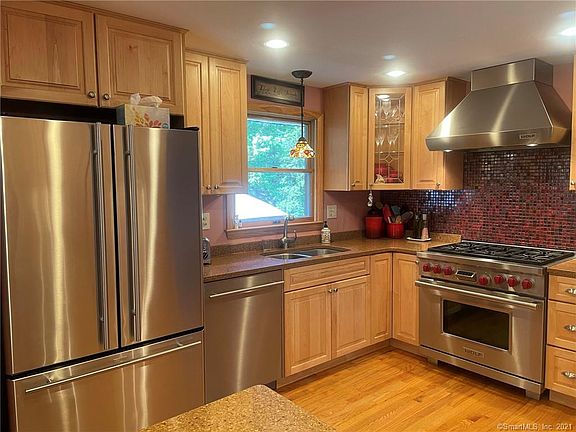 Live, Love, Laugh, "Work" and Play from home! Turn Key RR with multiple use options- Huge 36x20 separate studio/office/half bath added in 2002 currently used for music education and can easily be "in-law", home office and more. Main home offers LR open to DR open to updated kitchen with Wolf Stove and granite. DR table set and hutch can remain (matches cabinetry), main level Family room with vaulted ceilings and atrium doors to tri-level deck with awning for summer fun in "Thermo spa" or in the private level yard perfect for future pool. This level enjoys 3BR, 1 Bath. Lower level Rec room has "wood burning stove" , new tile floor and half bath that can be expanded- adjacent to laundry area and additional expandable basement space with door to yard and windows. Oil heat main house. Propane in studio. Hot tub remains. City septic, well water. Roof 3years old. Affordable Wallingford Electric, too!