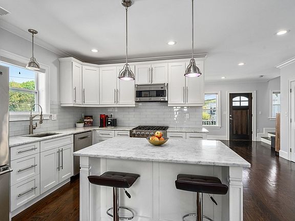 This gut renovated(2017) modern and meticulously kept home in Newton Upper Falls is a rare combination of convenient location and the charm of the neighborhood. The first floor features an open plan design and a well-appointed kitchen with custom cabinetry, marble countertops, and high-end Viking/Bosch appliances. It includes a full bathroom, a bedroom/office, and an open living and dining area. The second floor comprises a main bedroom suite with a private bath, two sunny bedrooms, a common bath and a laundry room, providing ample space for a family or guests. The finished lower level is accessible via a private entrance and offers an additional guest bedroom and full bath. A fenced backyard offers a private deck and patio, a perfect space for entertaining and enjoying summer soirees.This impressive house is easily accessible to major routes via I-95 or Rt 9, short distance to the Eliot T stop, restaurants and shopping making it an ideal location for commuting!