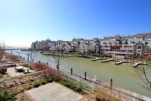 PORT LIBERTE! Pristine Direct Waterfront Tri-level townhome. Exquisite views of euro-style canal and partial NYc view. Media room with full bath opens to glorious waterfront flagstone patio with specimen landscaping. Gourmet eat-in kitchen with granite counters, stainless steel appliances and wood cabinetry opens to waterfront balcony with resort-like views. Luxurious master suite with limestone bath with soaking tub & frameless glass shower. 2nd BR with bath en suite. 1 car garage with room for 2nd in driveway.