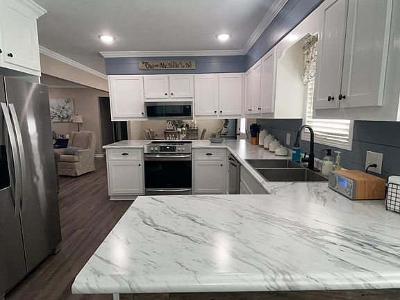 Beautiful, Brick Home with huge front porch, situated on 2 Lots and Move-in Ready. This home is gorgeous with smooth ceilings, new flooring throughout, new lighting inside home and outside. You will love the large kitchen with new countertops and fixtures.This home has 3 spacious bedrooms and 2 baths. Hang out in the Great Room, complete with fireplace and extra large storage closet. The workshop is 36'x36' with electrical and plumbing attached and has a seperate space for all your outdoor equipment. Wireless fencing is also available. Located on a cul-de-sac, this home is a must see to appreciate all it has to offer. Buyer to verify all info. Call today for your private tour.