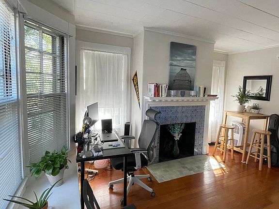 Separate entryway studio apartment on first floor rear of 1892 Victorian home in owner-occupied house in Cambridge. Two blocks to Harvard Yard, red line, grocery stores, shops, restaurants and cafes. Decorative fireplace, hardwood floors throughout, nicely sized living room/ bedroom space, separate kitchen with fridge and stove. Shared yard in the back. New air filter recently installed. No laundry on premises, laundromat 4 blocks away. Heat, hot water and WiFi included in rent. One (1) occupant only. One tandem parking space available for rent for $75/mo additional. Cats OK. Available 8/15 or 9/1. First, security and brokers.