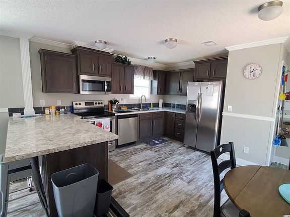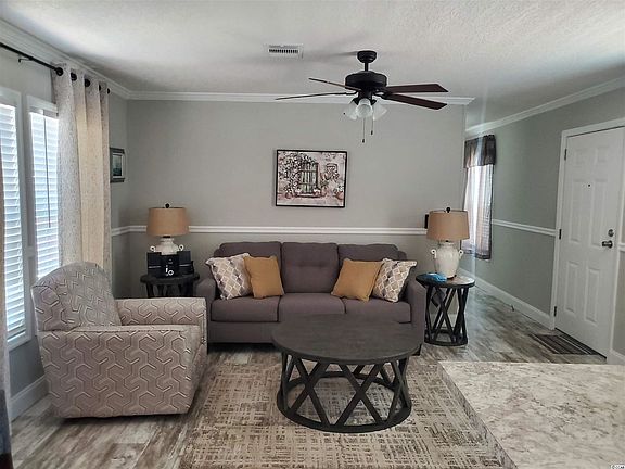 Don't miss this opportunity! This one year young mobile home has only been used lightly as a vacation retreat. Beautiful low maintenance wood look flooring throughout. Master suite has a walk in shower with seat, double sink vanity, and built in linen closet. Two additional bedrooms share the second bath with a tub/shower combo. Spacious back deck is the perfect place to relax and unwind. Front deck for additional seating area and handicapped accessible ramp. Windjammer Village has a clubhouse and community pool and is located just a golf cart ride from the beach. Close to Surfside Beach, Garden City, and Murrells Inlet attractions. Schedule your appointment today!