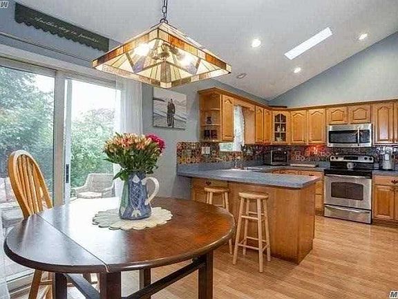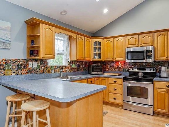 Open concept three bedroom, two bath ranch in rocky point school district with extended living space in the lower level! Enjoy vaulted ceiling living room and eat-in kitchen with stainless steel appliances. Fenced backyard offers patio, and in-ground sprinklers. Oil heating system and wall a/c units. 1 car garage and ample driveway parking. Taxes $9060. Basic star rebate -1300.00. Get your pre-approval ready and be ready to make an offer!