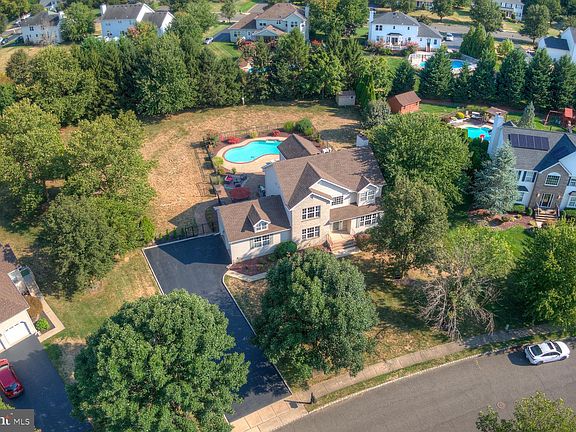 Remarkable North facing 4 Bedroom 2.5 Bath home located at the Country Meadows neighborhood in Robbinsville. This home had been upgraded throughout. The Kitchen has upgraded 42" maple cabinets, Granite Counters with tile backsplash, stainless steel appliances, recessed lighting, Large pantry with matching cabinet end caps, and a nice sized center island. The kitchen extends to the Breakfast Room addition which overlooks the back yard and also opens to the covered Veranda. The Expanded Family room includes Cherry hardwood floors, a fireplace with Slate Surround and it's own view of the Veranda. The first floor also includes the Dining Room, an office/possible 5th bedroom, Powder Room and the Laundry just right off of the Kitchen. Upstairs there are 4 Bedrooms with upgraded Bamboo simulated flooring and ceiling fans. The Main Bedroom Bathroom bath has been completely updated with New Cabinets, Luxury Soaking Tub, Tiled shower with Glass doors, New lighting and a full length mirror above the double sinks. The second full bath has also been upgraded with newer flooring, fresh paint, upgraded lighting and a new Mirror. The Basement is Finished with over 600 Sqft of usable space including a newly carpeted work out room. The back yard is Incredible!! It includes a "Doehler" built Paver Patio that is almost 800 sqft of finished area to enjoy. It also includes a Kitchen Island with small refrigerator, grill and granite Counters to accommodate a convenient place to eat. The patio connects to the covered veranda that includes a ceiling fan and access to the hot tub. The best part of the backyard is the inground pool that will keep you cool all summer long. You can vacation right in your back yard!! The home includes an oversized .73 acre lot, 2 car side entry garage, New roof in the last month, 7 year old hvac that was installed as an energy star home improvement with 24" of additional insulation blown into the attic. Conveniently located to Tantum Park, Thomas May Nature Trail, Blakely Park and the BAPS Shri Swaminarayan Mandir Hindu Temple. Highly rated Robbinsville High School District!!