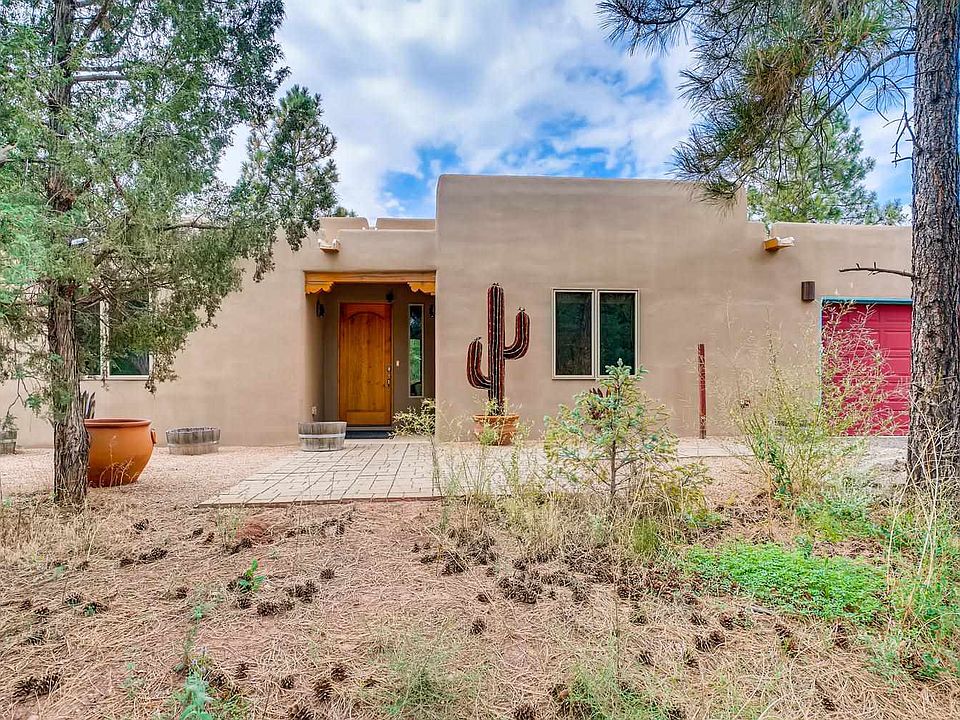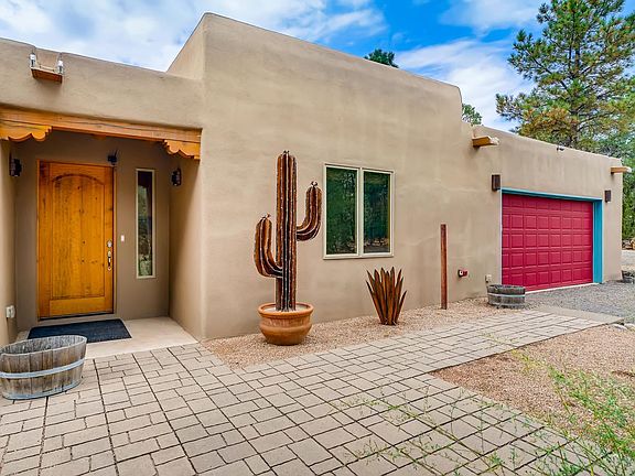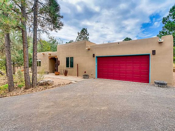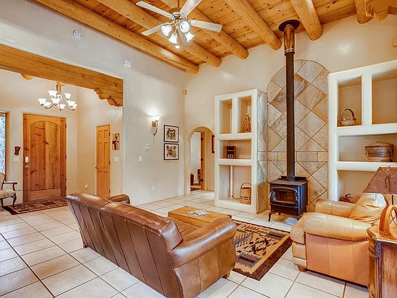 Amazing opportunity to own a horse property and beautiful home at a great price. This home has so many of the features/aesthetics buyers look for. Beautifully maintained home with high ceilings w/ vigas/additional wood detailing, attractive tile flooring and spacious room dimensions. A very well equipped kitchen with an abundance of storage, upgraded appliance package and stone surfaces. Master bedroom suite features a large bathroom area with soaking tub and separate shower area. Master bedroom area opens up to a large covered portal with kiva fireplace that can also be accessed from the living/kitchen area of the home. In addition to the 2 car garage, there is an additional finished 2 car garage w/ epoxy flooring that makes a great studio/workshop area or could be ideal guest house. Horse facilities include open concept horse shelter, covered hay storage w/ electric garage door, light, electricity, water in and near shelter. Additional oversized metal garage perfect for housing horse trailers/RV. Home is located in a tree covered area with views to Rowe Mesa. Additional upgrades/features include TPO commercial grade roof and private well.