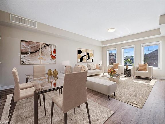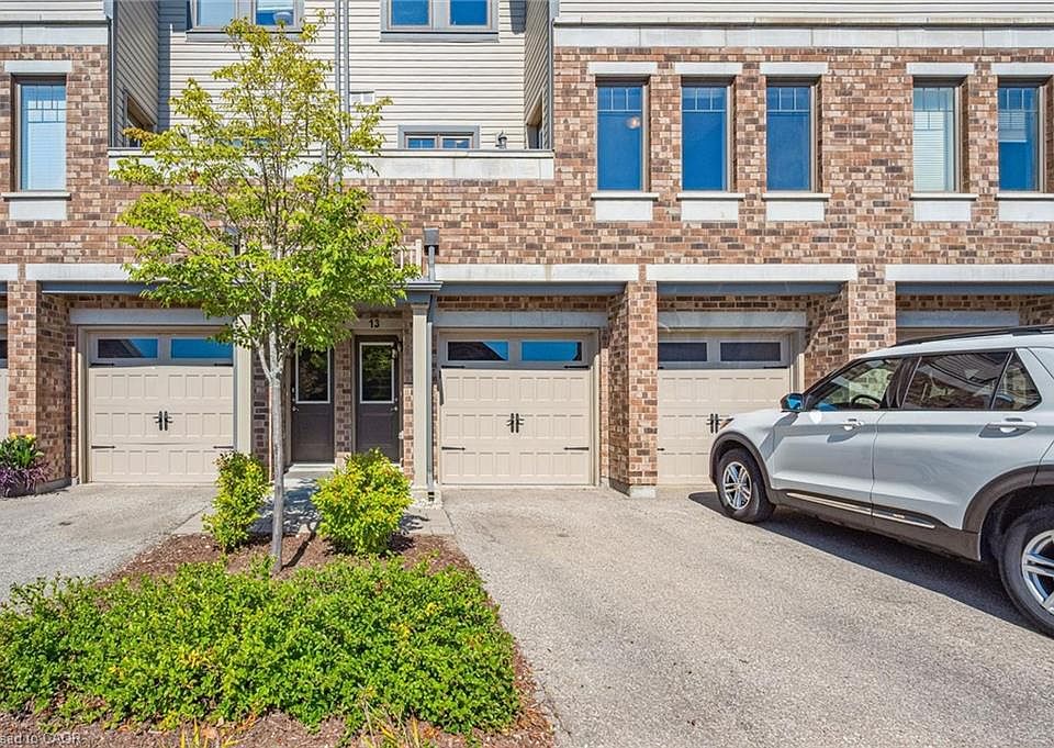 Welcome to 13-39 Kay Crescent, a rare find in Guelph's vibrant South End that offers the best of urban living with exceptional convenience. Located just moments from the Pergola Commons, this home provides unparalleled access to a wealth of amenities, including shopping, groceries, entertainment, and dining. Commuters will appreciate the easy access to Highway 401, making this the perfect blend of central location and accessibility. This stacked condo unit stands out with its flexible and generous parking, featuring one driveway spot and a covered garage with inside entry, plus visitor parking nearby—a true luxury for city living. Step inside to a bright and inviting open-concept main living level that is both functional and spacious. The layout is perfect for entertaining, with room for an extended dining table, a comfortable living area, and a well-appointed kitchen that all flow together seamlessly. Large windows bathe the space in natural light and offer picturesque views of the well-maintained common areas, complete with a gazebo, benches, and lush green space. A private balcony off the main living area provides a peaceful retreat for enjoying your morning coffee or evening relaxation. A convenient powder room completes this level. Upstairs, the bright and expansive primary bedroom is a true sanctuary. It features a striking accent wall, a spacious walk-in closet, and enough room for a king-sized bed and all your furniture. The second floor is designed for practicality, offering a good-sized second bedroom, a main bathroom with ample storage, and a dedicated utility room with a washer, dryer, hot water heater. This unit is a standout for its thoughtful design, premium parking, and incredible location. It's not just a home; it's a lifestyle waiting to be enjoyed.
